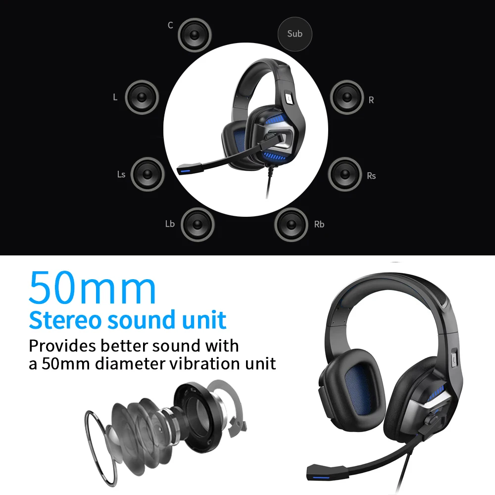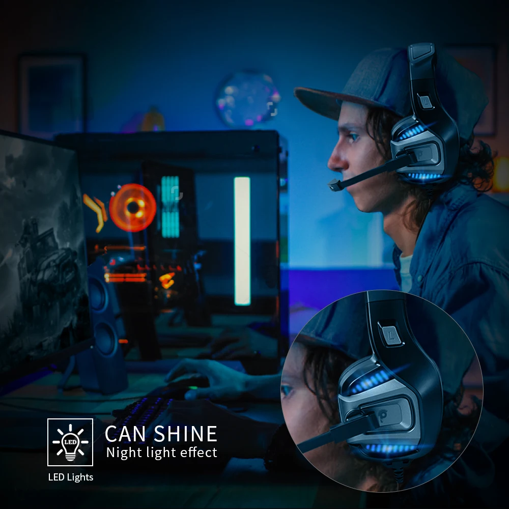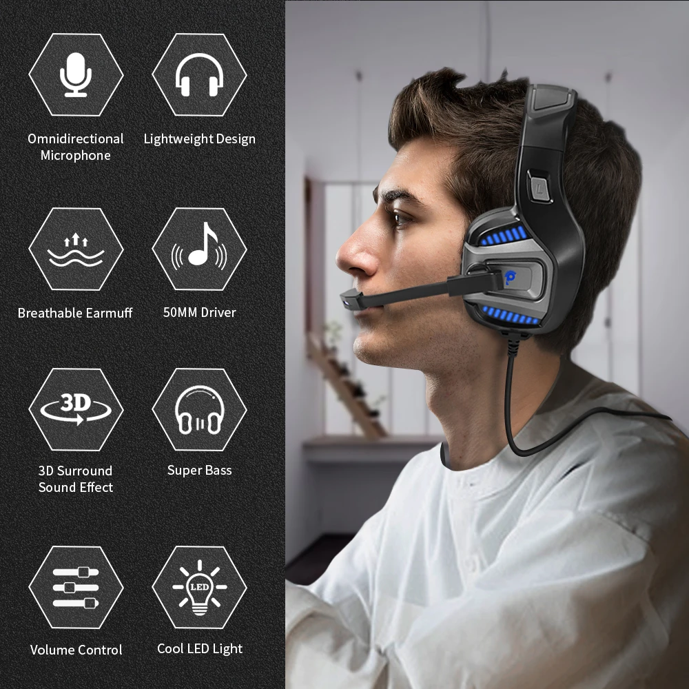 | Bass Stereo Led Light Gamer Headset For PS4 PS5 Fifa 21 Xbox Laptop PC Gaming Headphones Noise Reducetion Mic Wired Headset |